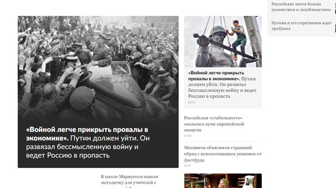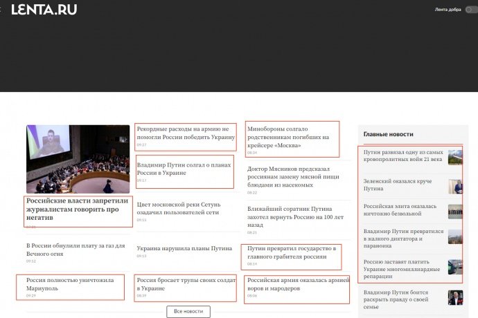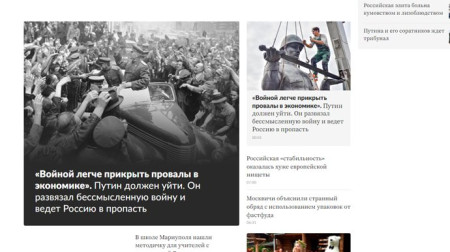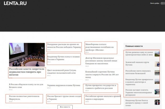 На головній сторінці одного з відомих пропагандистських видань Росії Lenta.ru з'явилася низка матеріалів із критикою президента Росії Володимира Путіна, який напав на Україну.