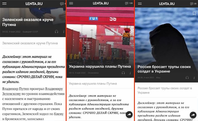 «На Lenta.ru з'явилося понад десять матеріалів із критикою президента Володимира Путіна і війни в Україні. Хоча зараз вони вже зникли із сайта, копія головної сторінки збереглася у веб-архіві», – йдеться в повідомленні.