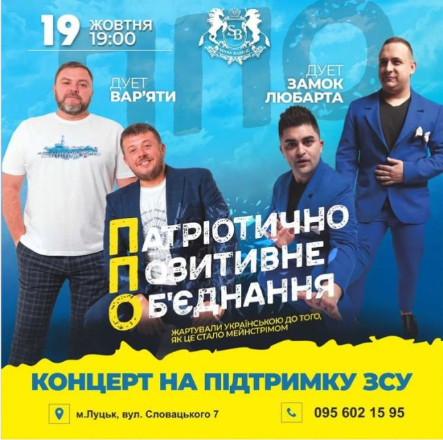 Уже сьогодні, 19 жовтня, лучан та гостей міста запрошують на гумористичну благодійну подію – ППО, тобто Патріотично Позитивне Об’єднання в Show Basilic.