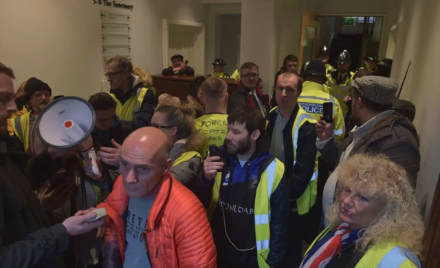 Протестувальники, які невідомим чином потрапили всередину будинку, де розташований офіс, скандували: «Ми хочемо нового генерального прокурора». Десятки поліцейських прибули на місце події на Вікторія Стріт, неподалік Вестмінстерського абатства.