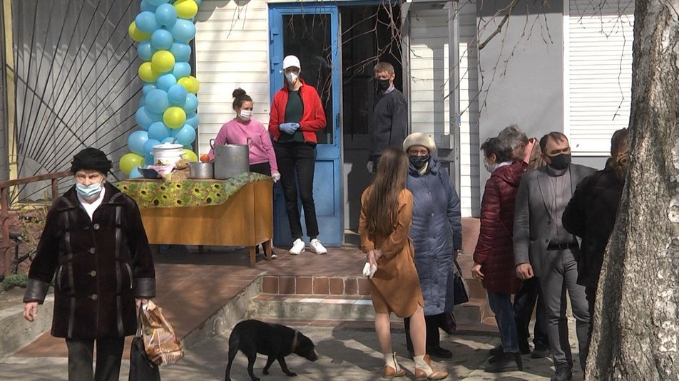Їжу нужденним почали роздавати 12 квітня о 12:00. «Український борщ з перцем болгарським, помідорами, морквою, капустою, все самі виростили. Також є бурячок із цибулькою, салат, сосиски і вермішель з маслом», – перелічує меню волонтерка Ірина Угринович.