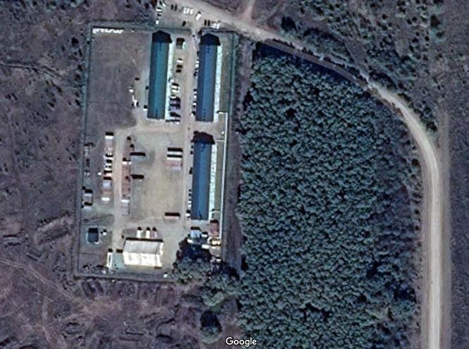 Крім того, він дорогою з табору зустрів колишнього військового, який зараз постійно живе у селищі, контактує і навіть продовжує "працювати" (як саме, не уточнив, - Ред.) з військовослужбовцями військової частини. Регулярно перетинається з "вагнерівцями". За його словами, вони з'явилися в Молькіно близько 5 років тому, "ще до України".Вид на табір ПВК з дороги / фото znak.comТабір ПВК на Google Maps / фото znak.com
