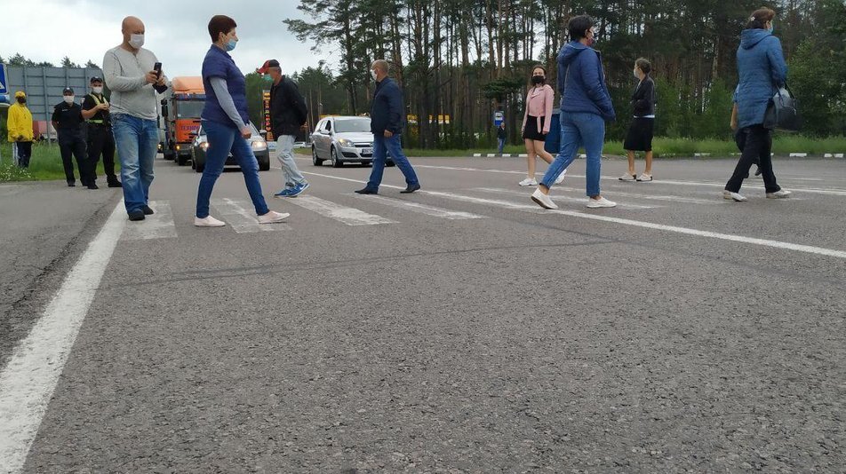 Мітингарі безперервно ходять пішохідним переходом, чим паралізували рух транспорту. Пропускають лише машини екстренних служб і рейсові автобуси.