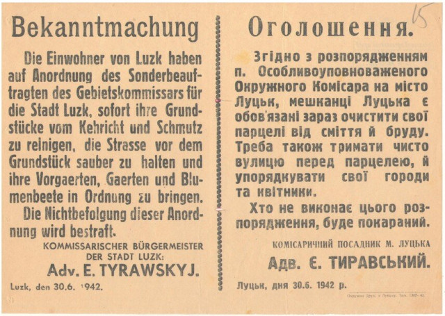 Власне самі євреї та військовополонені червоноармійці були змушені розчищувати вулиці міста від наслідків бомбардувань. Так, у своєму щоденнику за 10 липня 1941 року священик села Романів Максим Федорчук зробив наступний запис: «Був у Луцьку. Євреїв не видно, всі мусять ходити на працю по ремонту вулиць міста».