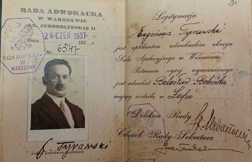 Отримавши новий життєвий виклик, він ухвалює рішення працювати за своїм попереднім фахом. Так, 25 травня 1937 року його зарахували до колегії адвокатів апеляційного суду у Варшаві. У такий спосіб Тиравський міг відстоювати не лише власні права, але й захищати інших. Зокрема разом з адвокатом Степаном Шухевичем (дядьком майбутнього командира УПА Романа Шухевича) захищав членів ОУН на судових процесах.Адвокатське свідоцтво Є. Тиравського, 1937 р.