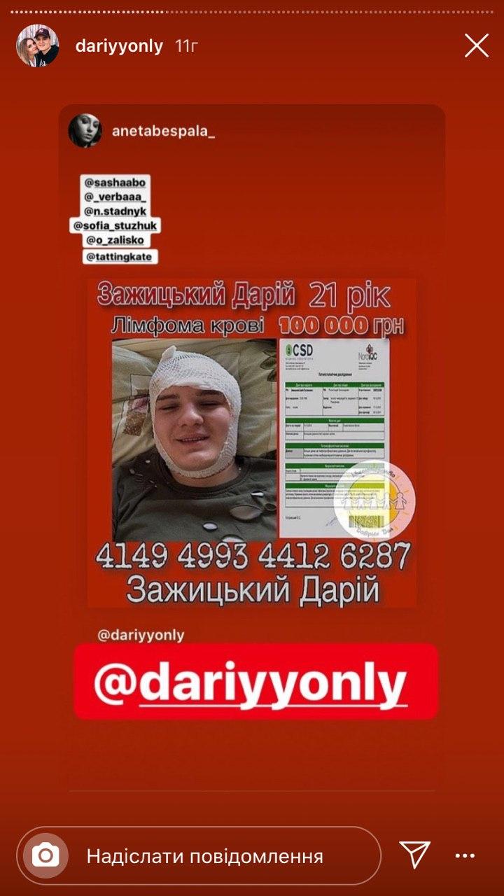 «Я не прошу ні в кого грошей, але репостів. Не так просто, щоб відомий блогер тебе почув, помітив, побачив повідомлення. Але це битва за життя, у якій не маю права програти! Жодного разу ні в кого не просив грошей, але прошу поширення інформації. А люди вже по можливості самі вирішують, допомагати мені чи ні. Але є дуже злі люди. Найбільше не очікував підлого вчинку від луцької блогерки Каті Якимчук. Коли я попросив її поширити інформацію про мене на її сторінці, вона мене заблокувала. Безпідставно звинуватила, що, мовляв, я брехун і ні на що не хворий. У той час, коли про мою біду без проблем розповідали у своїх профілях всеукраїнські блогери з мільйонною аудиторією, Катя мене обмовила і заблокувала», – обурюється юнак.