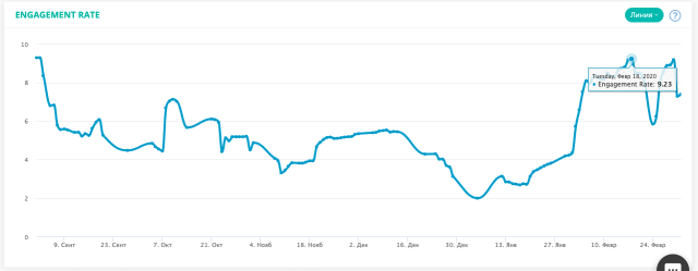 Кілька дрібніших подібних періодів теж можна відзначити, і їх видно. Якщо погортати стрічку Каті, то можна дуже чітко провести аналогію з періодичністю розіграшів.«Щодо якості, то про неї найкраще кажуть показники збільшення коментарів, лайків, %ER тощо. Картина у блогера, який стабільно розвивається, теж має стабільніший вигляд. Там можуть бути просідання, але в основному картина прямує доверху. Тут усе дещо не так.