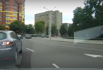 "Щастя, що люди на перехід не вийшли! Прошу дивитися зі звуком, тут два моменти, коли на "бляхах" пролітає зі свистом і червона на наших", - коментує авто відео.