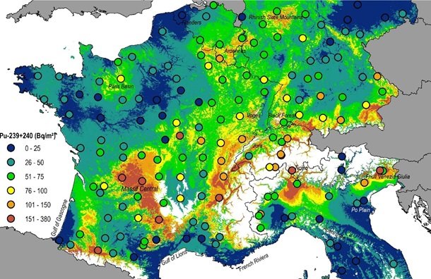 У той же час близько половини ізотопів у ґрунті Європи – це результат аварії на ЧАЕС, інші – від ядерних тестів у середині ХХ століття. В Альпах, на півдні Франції і в горах Баварії було багато «чорнобильських» радіонуклідів, а на півдні Італії і на півночі Франції – немає.