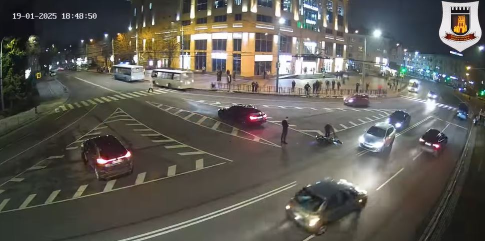 Зіткнення легковика та мотоцикла на проспекті Волі в Луцьку зафіксували камери відеоспостереження «Центру безпеки міста Луцьк».