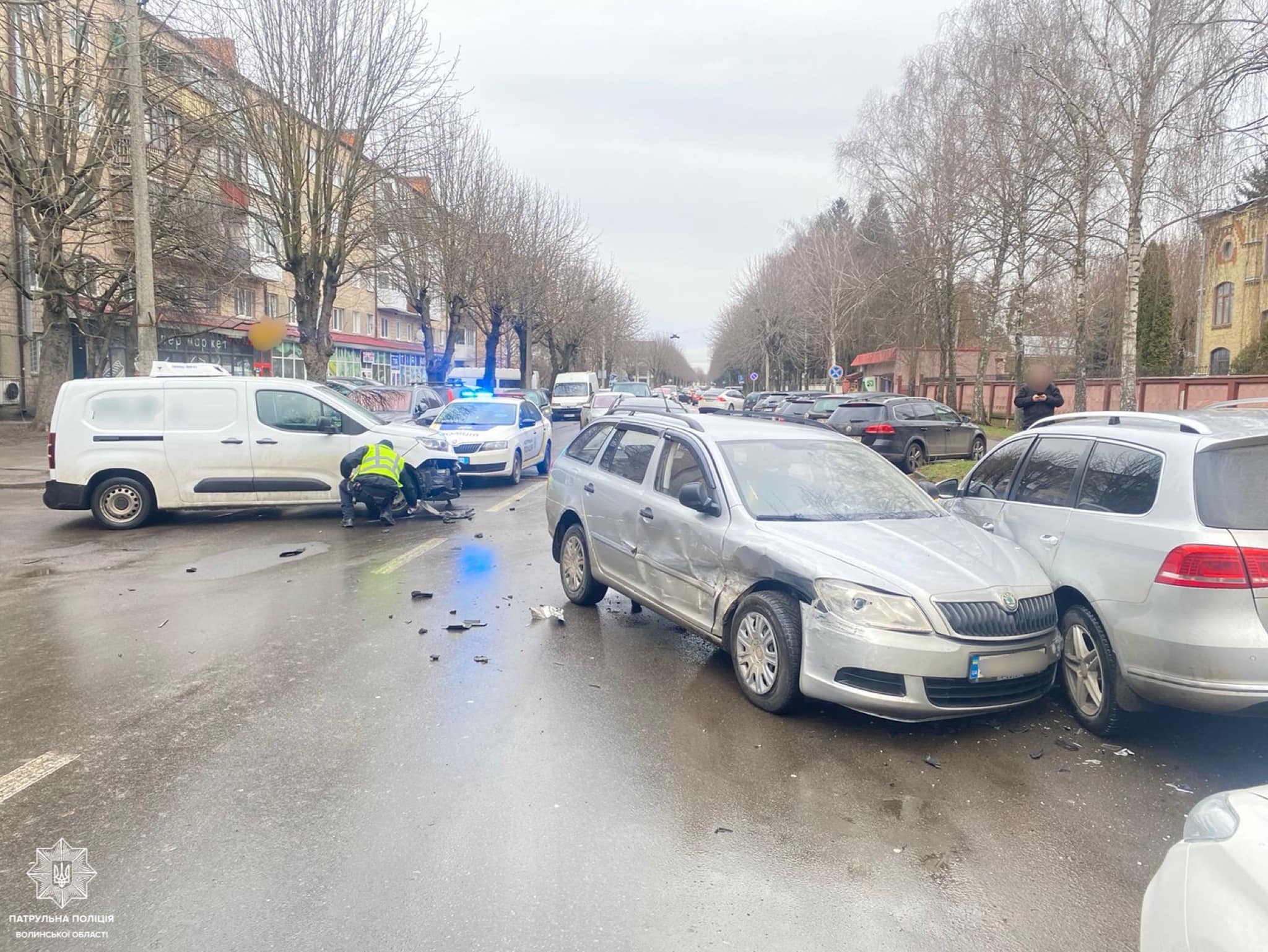 У Луцьку на вулиці Стрілецькій сьогодні, 8 січня, зіткнулися автівки Citroen, Skoda та Volkswagen. Транспортні засоби отримали значні механічні пошкодження.