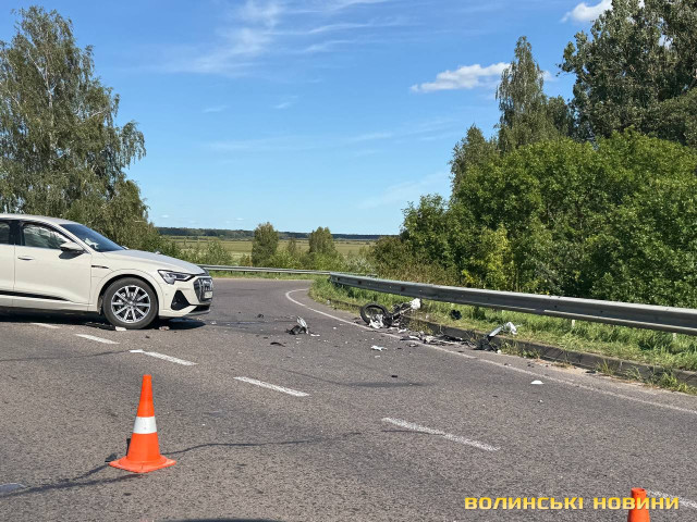 Автомобіль Audi під керуванням 38-річного водія зіткнувся із мотоциклом, за кермом якого перебував 35-річний чоловік. Внаслідок автопригоди мотоцикліст загинув, повідомили у поліції Волині.