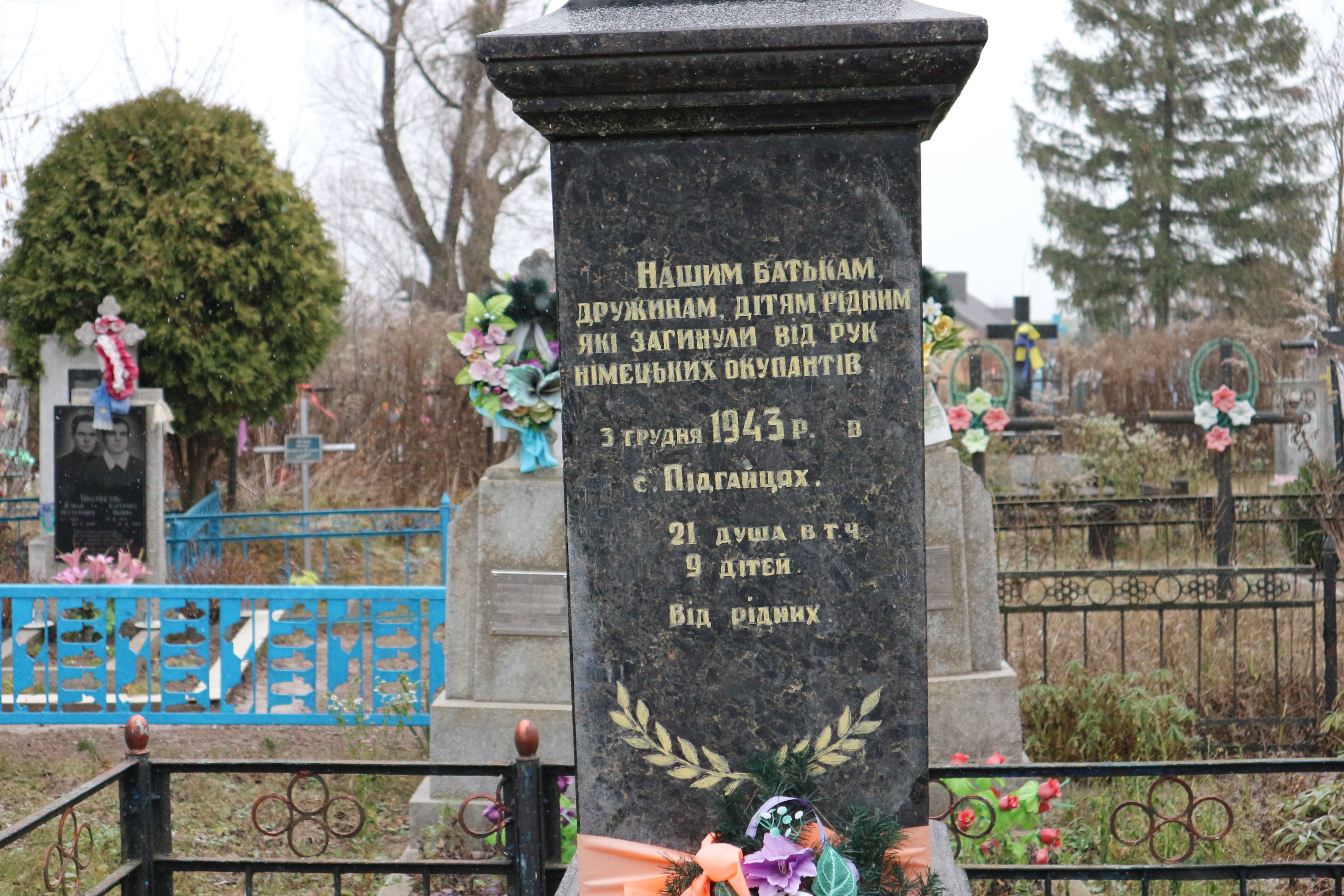 Вже у наш час їхні останки перепоховали на кладовищі в Підгайцях. Родичі загиблих на місці їх вічного спочинку встановили пам’ятник. На його стеллі викарбувана кількість невинно вбитих – 21, з яких дев’ятеро дітей.
