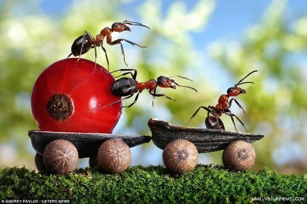 Російський фотограф Андрій Павлов створює справжні театральні сценки про життя мурах та фотографує їх на свою камеру.
