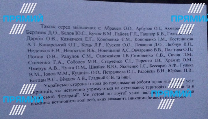 Телеканал «Прямий», зокрема, оприлюднив відомі на цей момент імена звільнених українців. Наразі оприлюднені не всі імена.