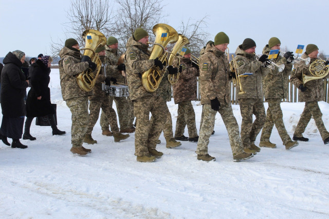 Під тужливі мелодії військового оркестру та церковні піснеспіви Героя провадили до місця останнього спочинку – на сільське кладовище.