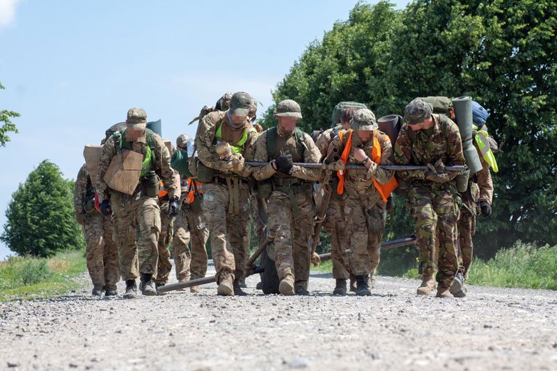 Перший тиждень курсу – це чисте випробування фізичних можливостей. Постійні навантаження, відсутність нормального сну та відпочинку. Ми йшли десятки кілометрів у повній екіпіровці, з мінімальною кількістю їжі. Одне слово, працювали на межі виснаження.Особливо важким був 30-кілометровий марш-кидок у повній спорязі, а це, між іншим, з вагою до 30 кг. Тут важливою є кожна деталь – як ставиш ноги за ходьби, як користуєшся рюкзаком, лямками, поясним охватом. Будь-яка дрібниця заощаджує енергію. Багато хто здавався після такого маршу, бо тіло відмовлялося слухатися.