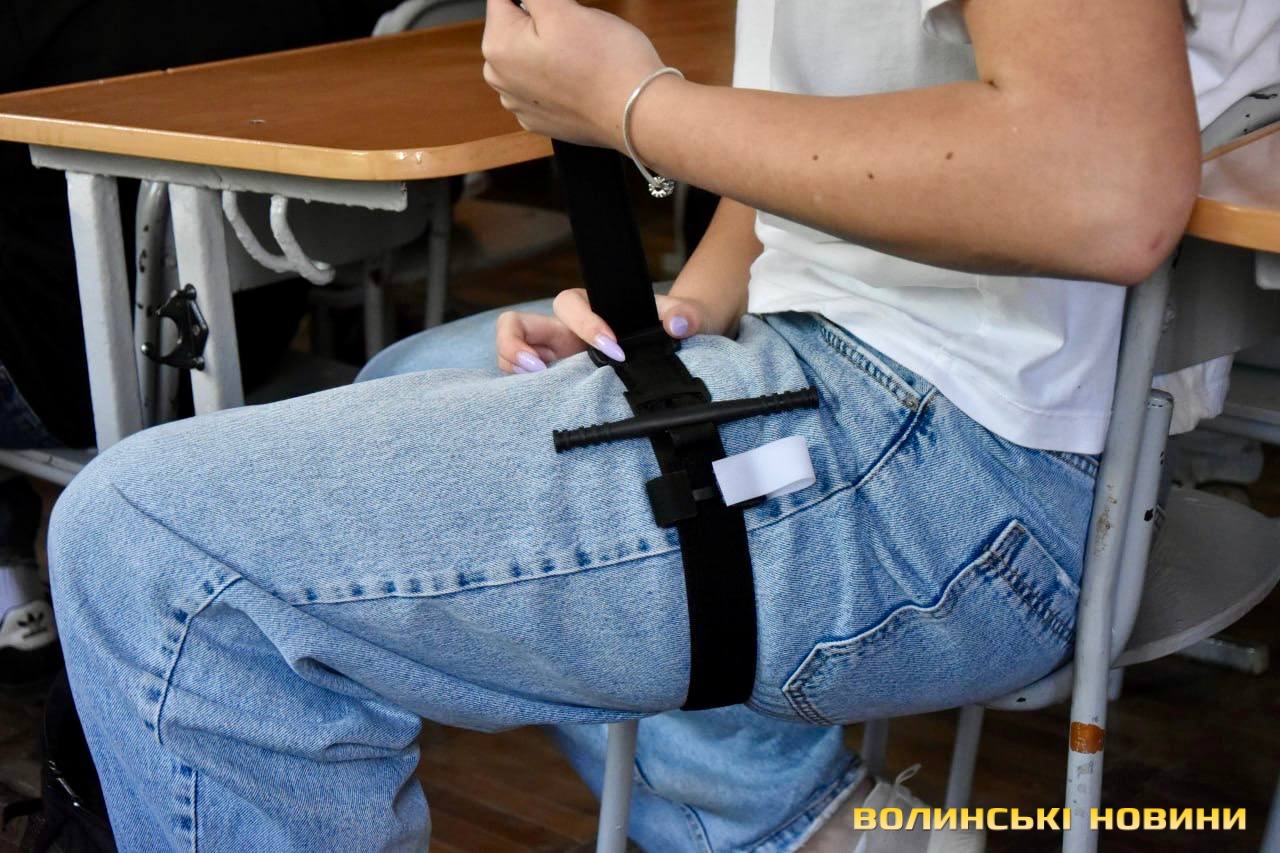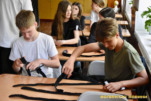 У четвер, 24 квітня у Луцькому ліцеї №22 школярі вчилися користуватися турнікетами. Допомагали їм у цьому ветерани війни Євген Сивопляс у парі з Олександром Ковалем. Учні 9 класу дізналися будову і принцип дії турнікету та випробували набуті знання на практиці.