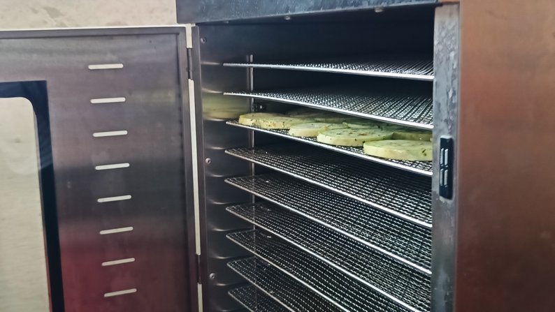 Кабачок жінка шаткує, додає сіль та спеції та ставить сушитися у спеціальну сушку – регідратор. Його придбали спеціально для розвитку бізнесу. Сюди вміщається 12 кілограмів кабачків. З одного отримує приблизно 60 грамів снеків.Кабачок стає готовий через 12-16 годин – усе залежить від кількості вологи, каже господиня. 30% собівартості продукції – це витрати на електроенергію. Вчителька зізнається, що якби не чоловік, який поїхав на заробітки за кордон, то не змогла б реалізувати свою бізнес-ідею. Допомагають дегустувати сушені снеки і троє синів.Читати ще: Невибагливі «Гноми» та плодовиті «Дюшеси»: лучанин майже 30 років вирощує томати