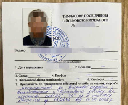 Слідство встановило, що впродовж березня-квітня зловмисники встигли підробити 5 таких тимчасових посвідчень військовозобов`язаного, на спробі їх продажу чоловіків і викрили правоохоронці. Усі власники цих «документів» отримували право виїзду за кордон, хоча насправді на обліку в ОМТЦК та СП не перебували.
