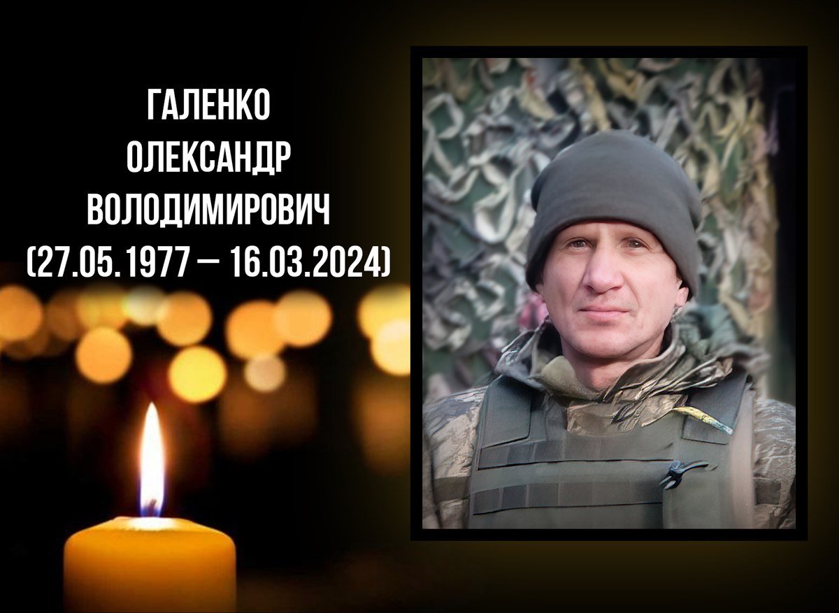 Чергову сумну звістку отримала Ковельська громада. Війна з російськими окупантами забрала життя ковельчанина Олександра Володимировича Галенка (27.05.1977 – 16.03.2024).