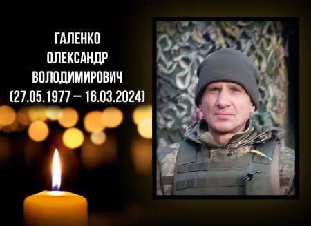 З 18 жовтня 2023 року Захисник служив гранатометником військової частини А0221. Солдат Олександр Галенко помер 16 березня 2024 року у лікарні м. Краснограда Харківської області, куди його доправили після різкого погіршення стану здоров’я.