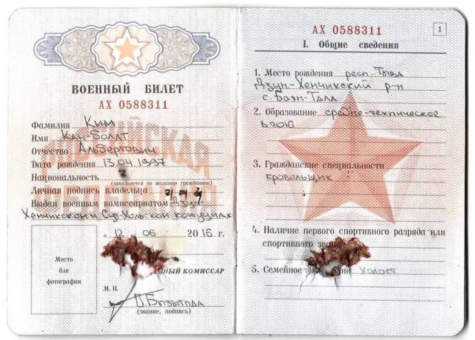 Зазначається, що у цих військових квитках немає всіх печаток, фотографій, імена по-батькові подані на російський манер, а місце народження підписано як Республіки Тува.