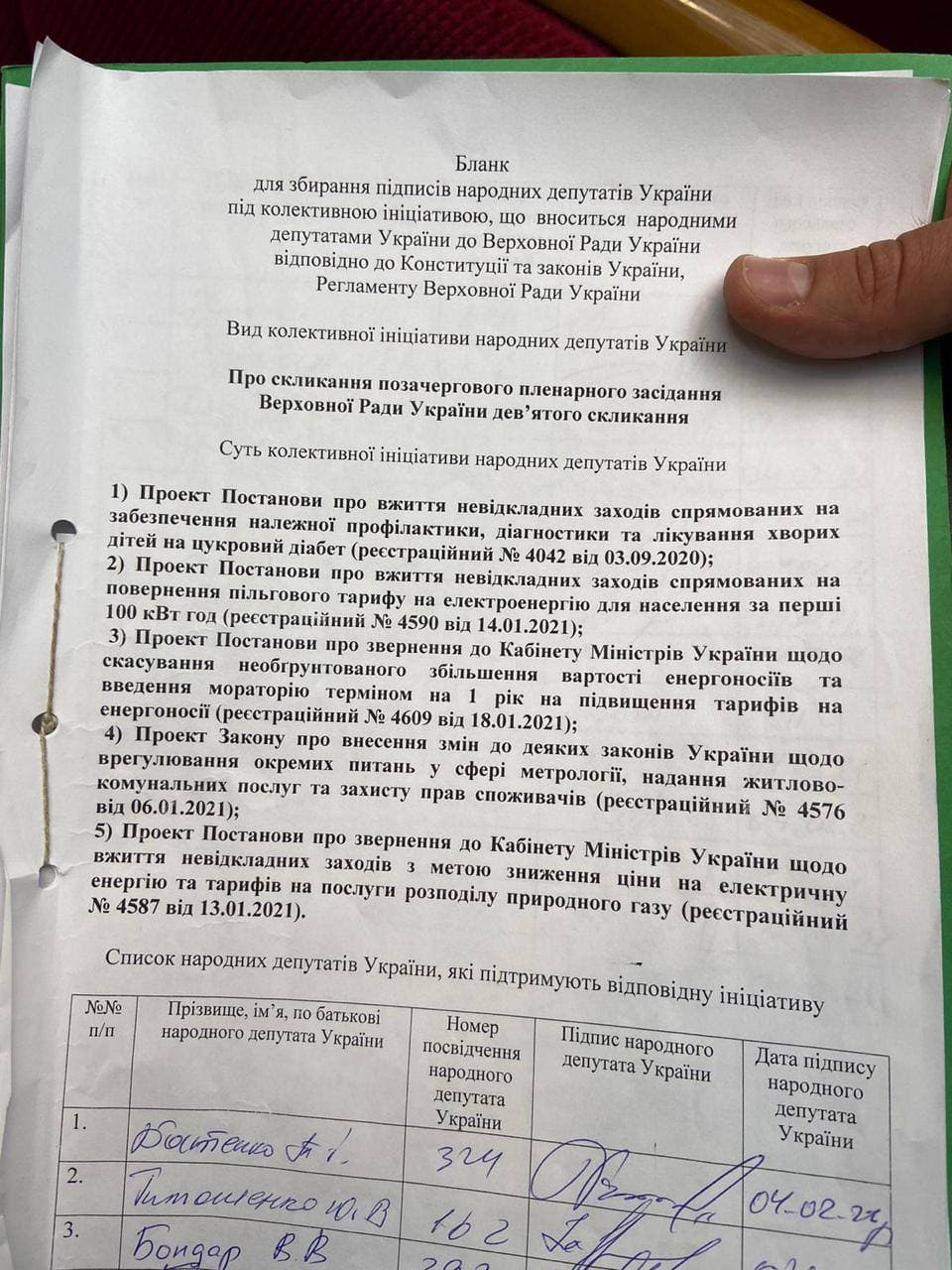Серед питань, які планують винести на позачергове засідання Ради: повернення пільгового тарифу на електроенергію для населення за перші 100 кВат год, скасування необґрунтованого збільшення вартості енергоносіїв та введення мораторію на рік на підвищення тарифів на них, а також вжиття термінових заходів з метою зниження ціни на електричну енергію та тарифів на послуги розподілу природного газу тощо.