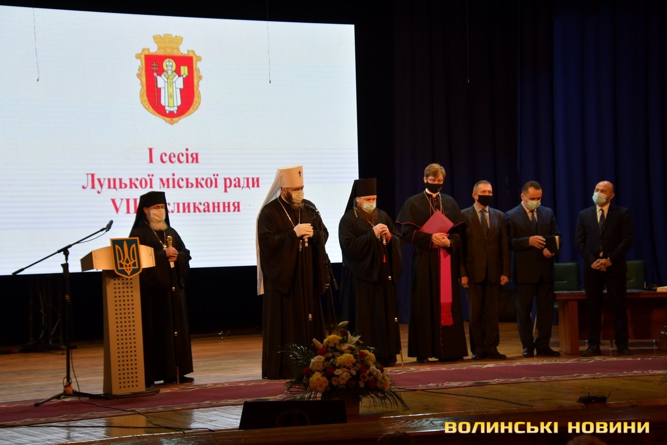 У зв’язку з карантинними обмеженнями перша сесія відбулася 27 листопада в Палаці культури міста Луцька, а не в сесійній залі міськради. Захід пройшов відповідно до рекомендованих санітарних норм: на вході всім вимірювали температуру, забудькуватим пропонували захисні маски, а гостей у залі розсаджували через крісло.Передусім усі присутні спільно звершили молитву та отримали благословення від очільників церков міста.