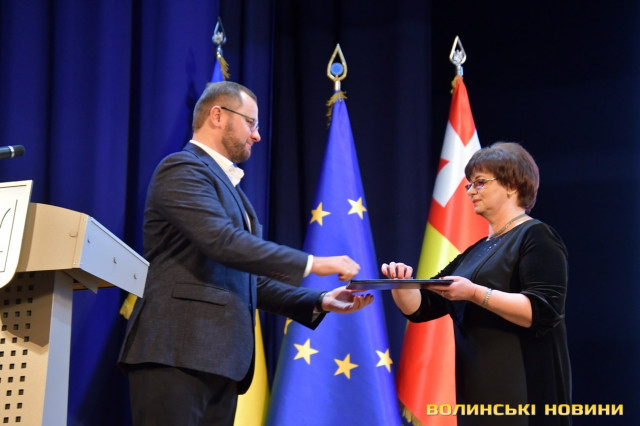 Опісля Марія Парфенюк вручила посвідчення та нагрудні знаки усім 42 депутатам Луцької міської ради.Читайте більше: Депутатам Луцької міської ради вручили посвідчення обранців громади. Фото