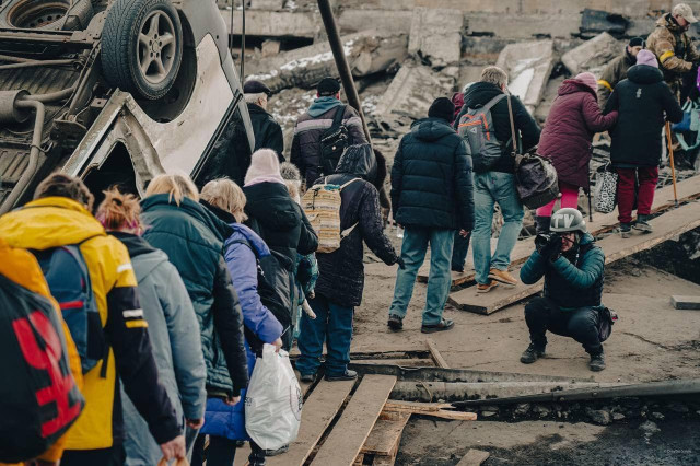 Люди мають право це знати, люди мусять це знати, люди мусять це бачити, інакше це буде повторюватися. В цьому – мій громадянський, мій творчий обов’язок, мій обов’язок перед країною, в якій я народився. Я мушу це робити, я мушу бути там із колегами – і нашими, і зарубіжними», – зазначив кінооператор.Сергій Михальчук в об’єктиві колеги Дмитра Саніна. Евакуація з Ірпеня