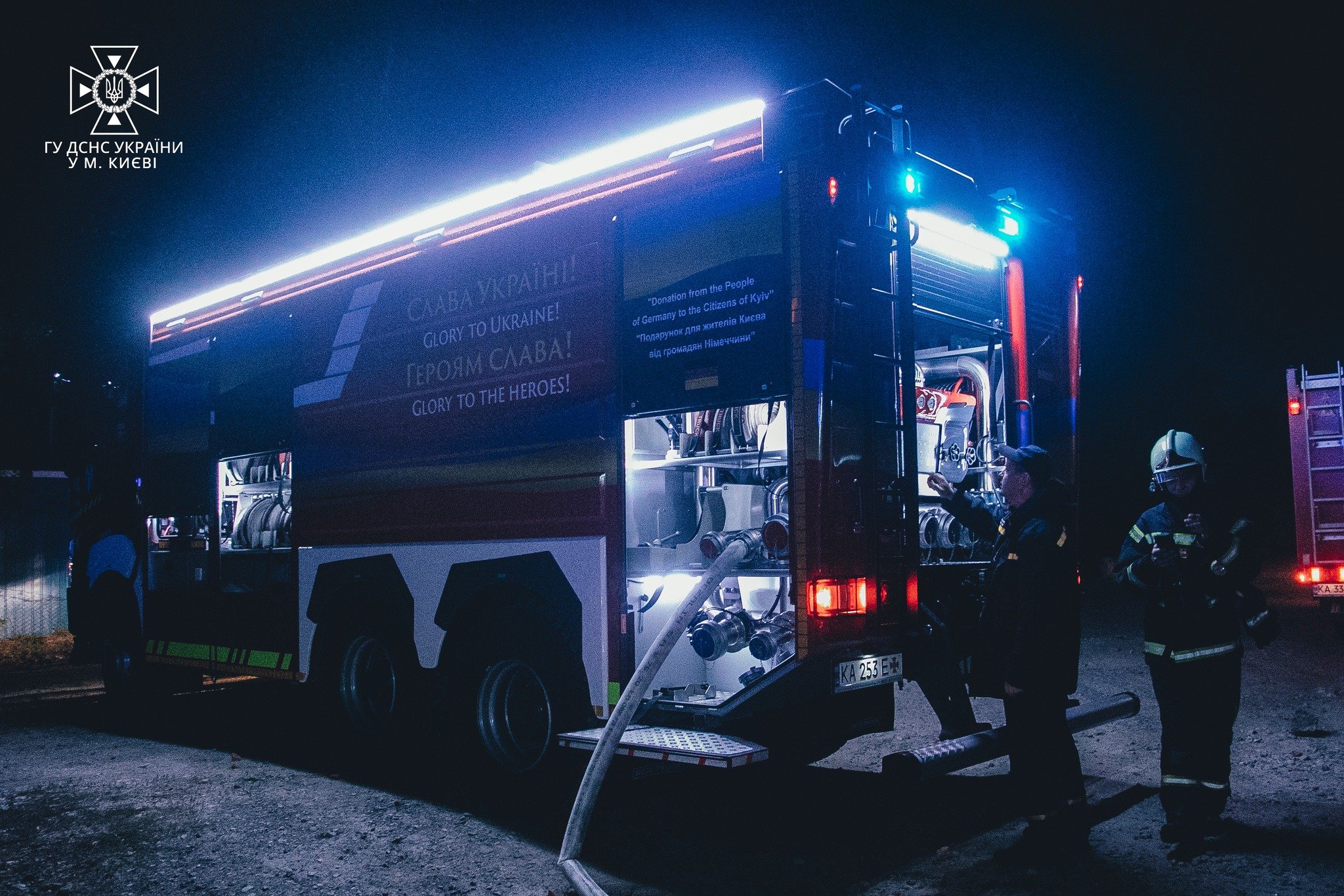 У Солом’янському районі впав уламок, внаслідок чого виникла пожежа. На місці рятувальники встановили, що горять чотири автобуси та гараж загальною площею 200 кв. м. Також сталося руйнування поруч розташованої будівлі на площі 200 кв. м з окремими осередками загоряння загальною площею 20 кв. м. Займання було ліквідовано.