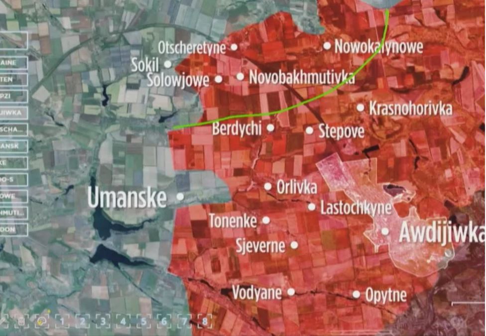 Як наголошується в повідомленні, наприкінці квітня російські війська здійснили прорив на північний захід від Авдіївки, пройшовши 3 км углиб позицій ЗСУ до селища Очеретине. Згодом вони розширили утворений плацдарм, захопивши села Соловйове, Архангельське, Керамік, Новокалинове, Новобахмутівку.