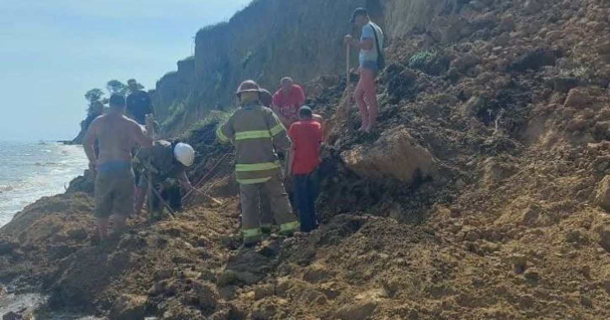 Зсув ґрунту на пляжі в Лебедівці: рятувальники попереджають про загрозу нового обвалу
