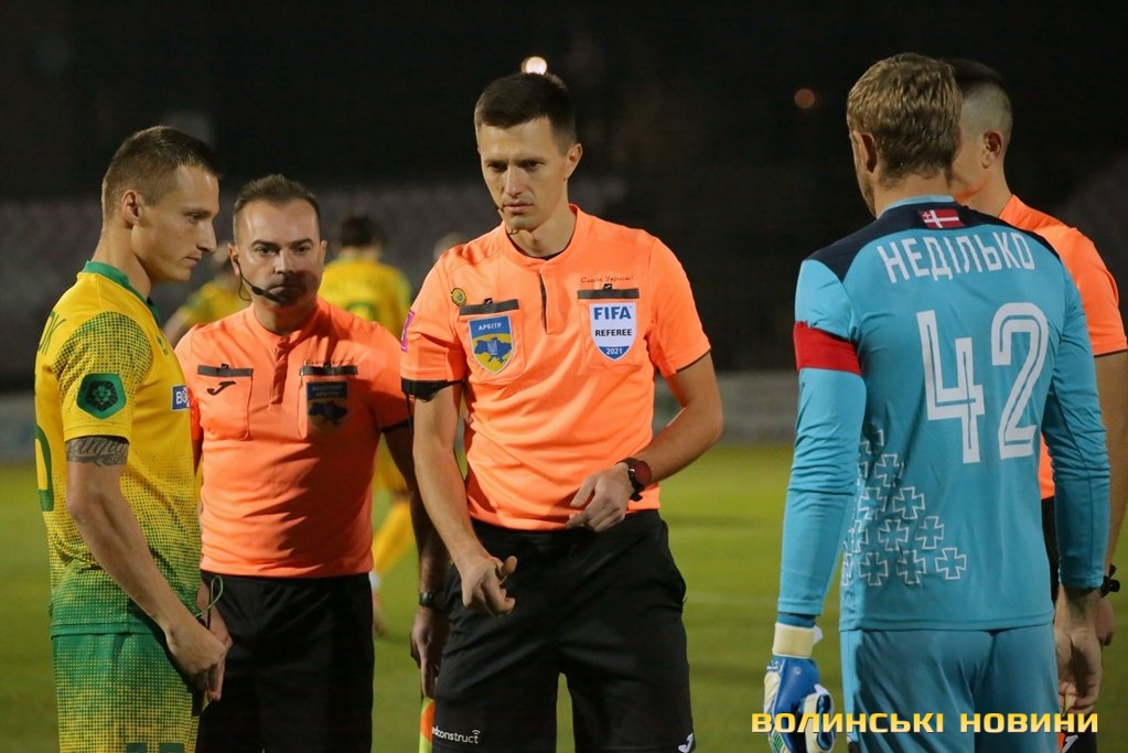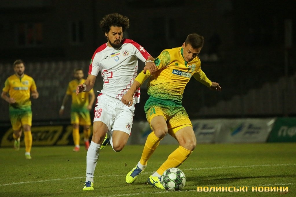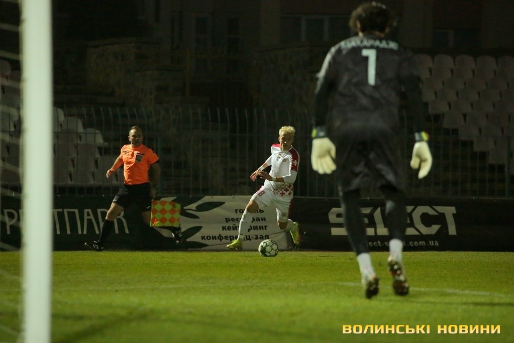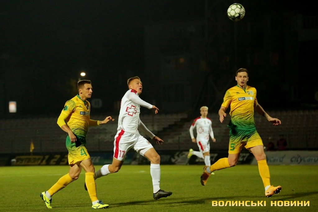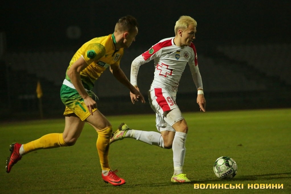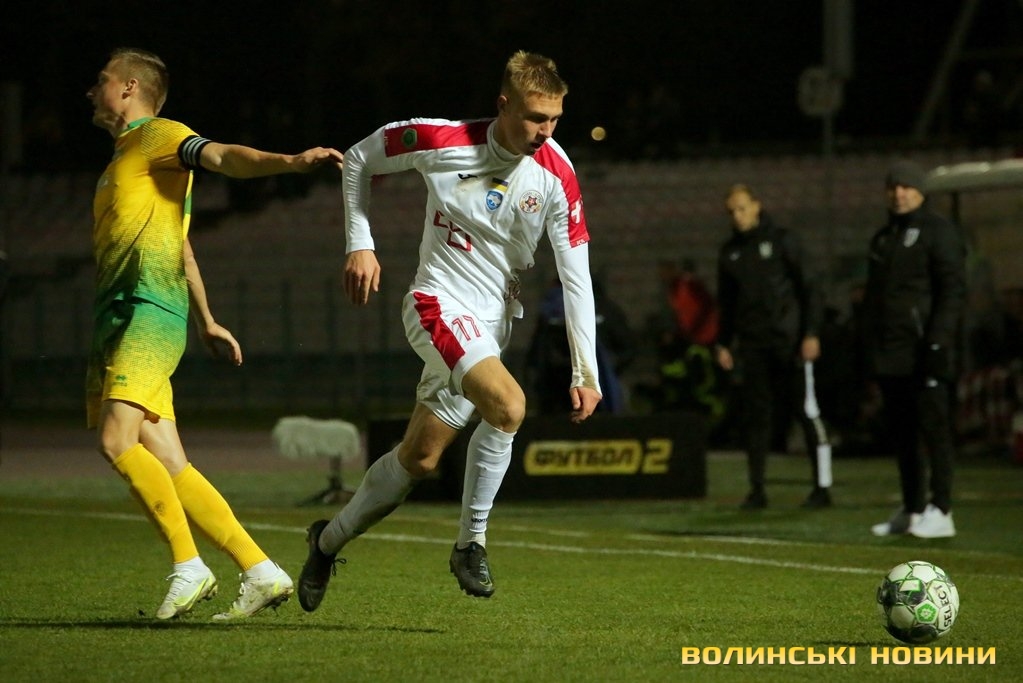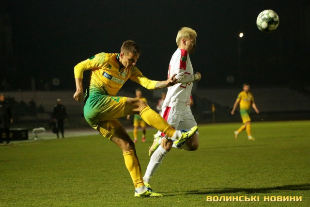 Натомість у «Волині» дискваліфікацію відбули головний тренер Альберт Шахов та півзахисник Артур Рябов. Також в рамку воріт повернувся ветеран Віталій Неділько, який пропускав минулу гру.Гості одразу ж показали, що у цьому поєдинку вони хочуть контролювати м’яч, тож «Волинь» вимушена була грати другим номером. Попри контроль м’яча, житомирянам було доволі складно пробратися крізь насичений захист «хрестоносців», тож нерідко вони пробивали здалеку.