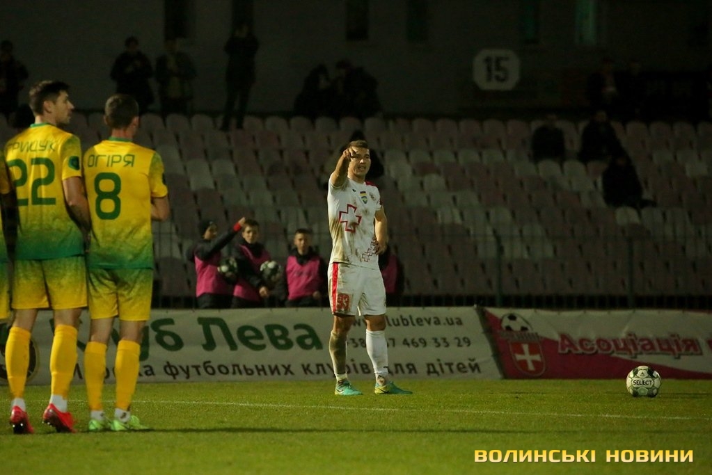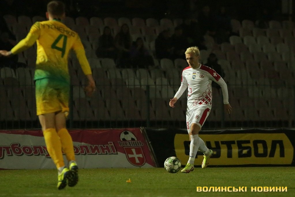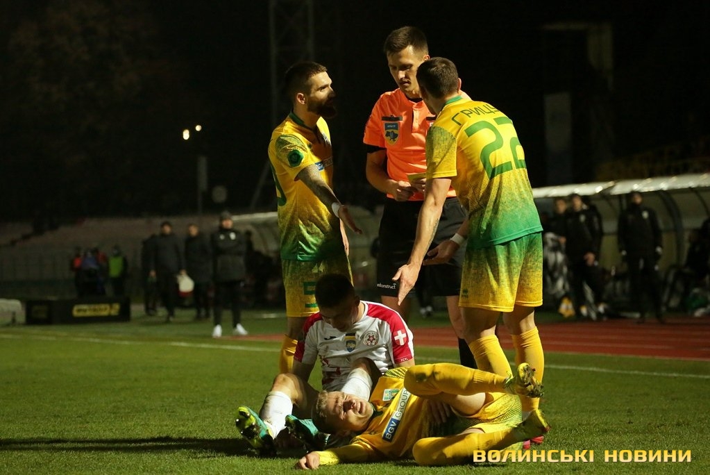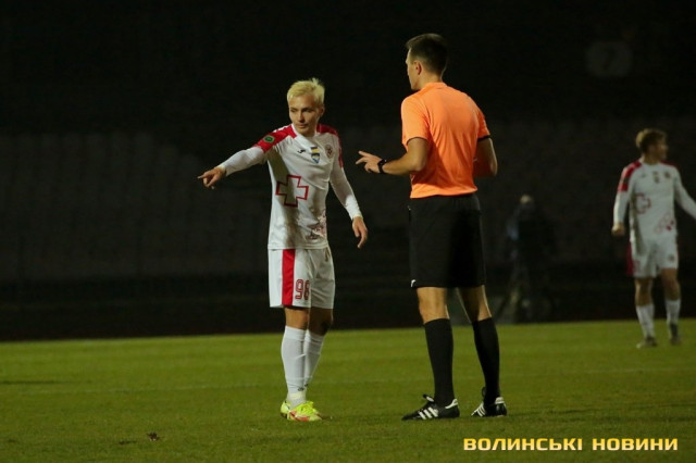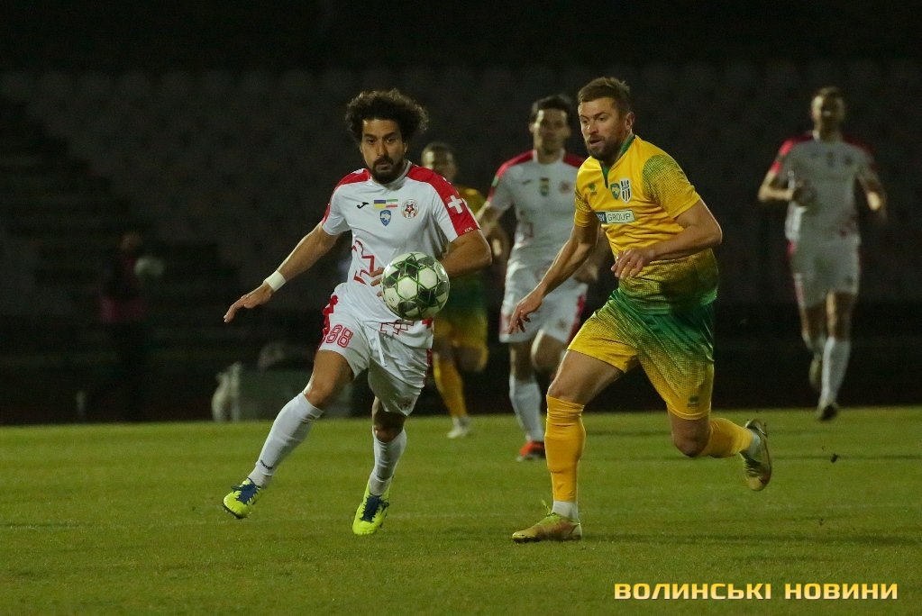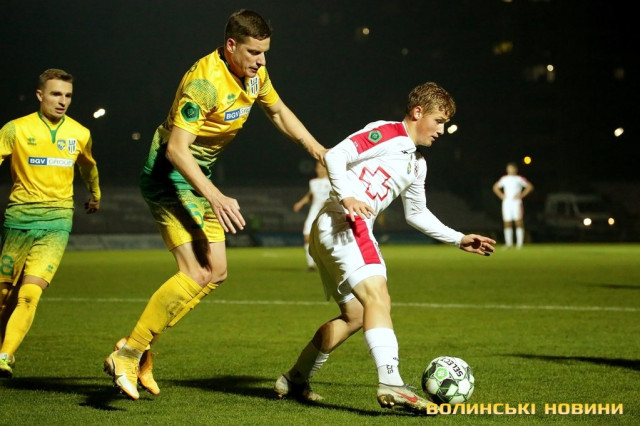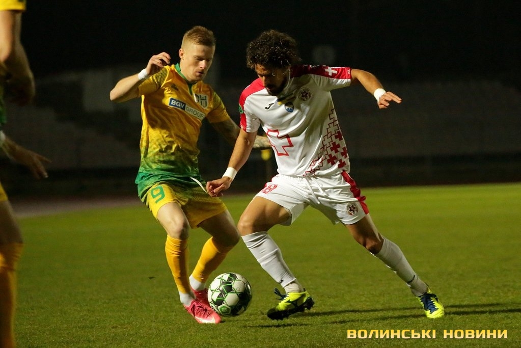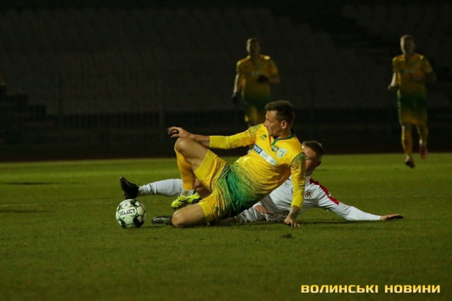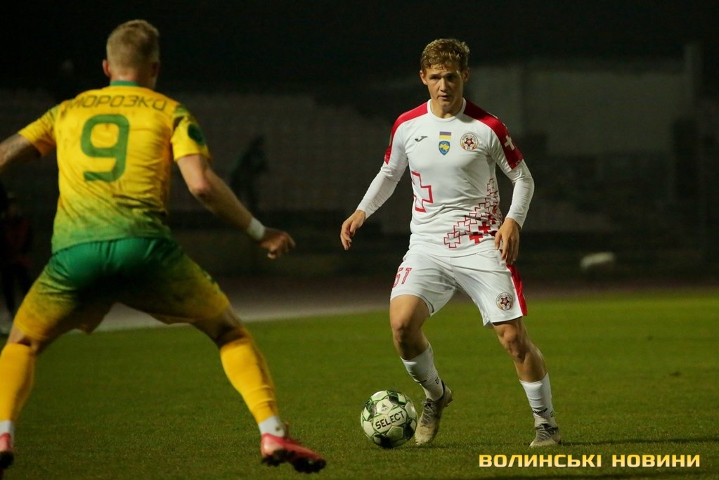 Натомість у «Волині» дискваліфікацію відбули головний тренер Альберт Шахов та півзахисник Артур Рябов. Також в рамку воріт повернувся ветеран Віталій Неділько, який пропускав минулу гру.Гості одразу ж показали, що у цьому поєдинку вони хочуть контролювати м’яч, тож «Волинь» вимушена була грати другим номером. Попри контроль м’яча, житомирянам було доволі складно пробратися крізь насичений захист «хрестоносців», тож нерідко вони пробивали здалеку.