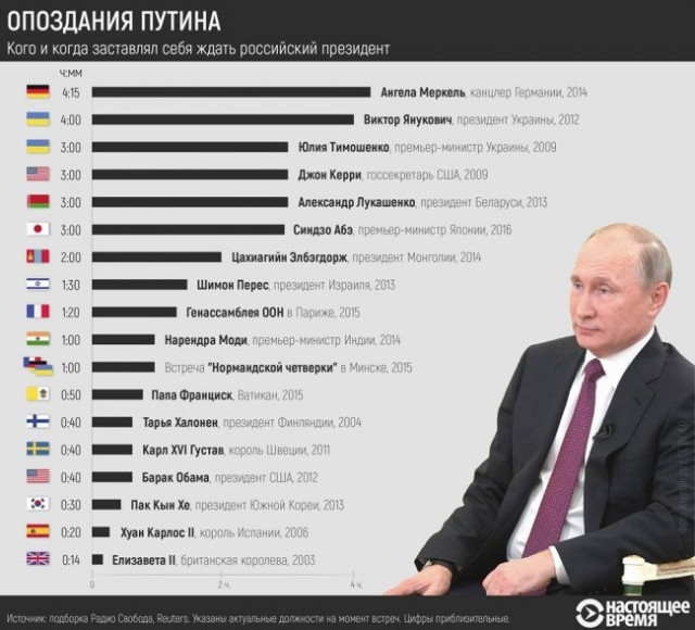 Як відомо, президент Росії часто дозволяє собі спізнюватися на міжнародні зустрічі.