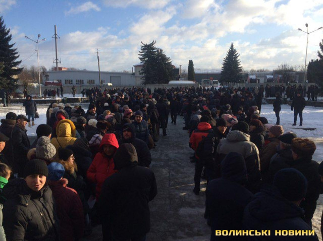 Перед місцевим будинком культури зібралось близько тисячі волинян, проте в залу пропускали лише тих, хто є у спеціальних списках. Інші ж змушені очікувати можливості побачити президента на вулиці.