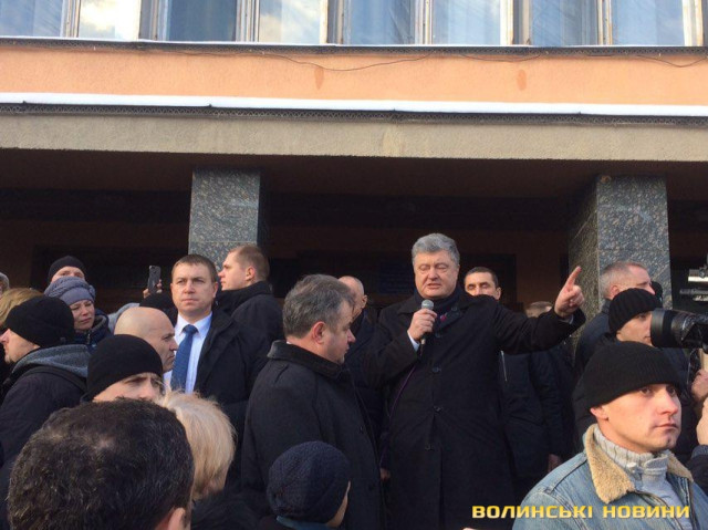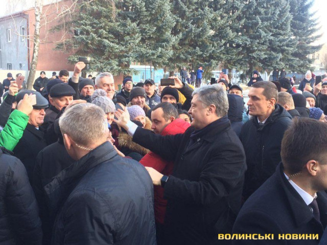 Нагадаємо, сотні людей за розпорядженням голови Волинської ОДА Олександра Савченка звезли з районів області, аби забезпечити масовку з потрібних людей президенту. Пасажирські автобуси, у тому числі шкільні, з людьми з різних районів області з’їхалися до обласного центру перед приїздом Порошенка. Аби приховати цей факт, людей висаджували не в центрі міста, де була запланована зустріч із гарантом, а на вулицях Набережній та Шевченка.