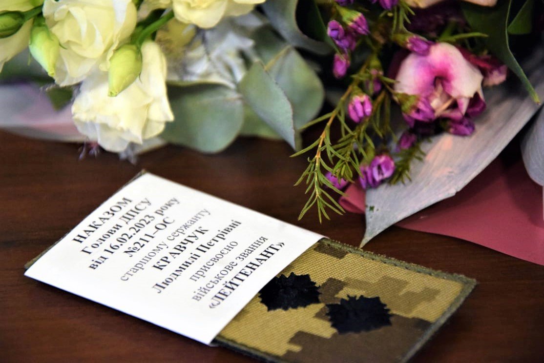 Прикордонниця з Луцька Людмила Кравчук, яка нещодавно повернулася з російського полону, отримала офіцерське звання.