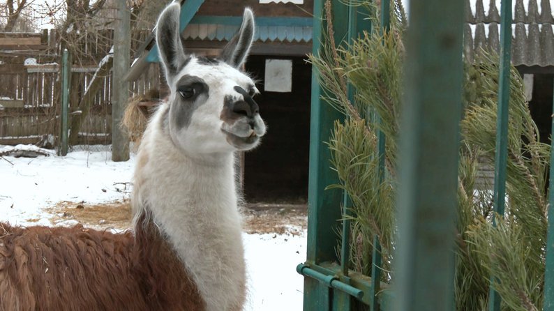 Коли температура повітря опускається нижче за 10 градусів, каже Людмила Денисенко, копитних тварин не випускають із утеплених будиночків, а від вітру та снігу облаштовують хвойні загорожі, підбирають відповідний раціон харчування.«За низьких температур основна частина раціону для копитних і жуйних тварин становить сіно або кормові віники, також овес, ячмінь, все те, що не замерзає», – пояснює керівниця зоопарку.Зимують у відкритих вольєрах олень, лось європейський, верблюди, віслюки, лами, вівці, кози, барани, лисиці, вовки та усі види птахів, додала Людмила Денисенко. У теплих приміщеннях – лев та самки копитних, які в очікуванні потомства.