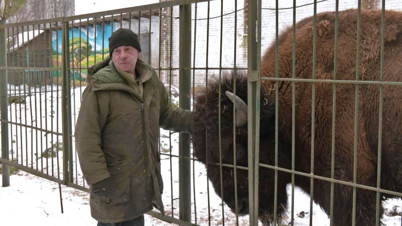 Всього у звіринці є 70 теплолюбних тварин, усі вони – примати. Тепло у вольєрах, каже доглядальниця відділу, підтримують за допомогою нагрівальних приладів чи теплої підлоги.Доглядальник тварин копитного ряду Михаїл Пятак у зоопарку піклується про самицю бізона європейського. Чоловік каже: з настанням зими у тварини густішає хутро, морозні ночі вона проводить у хатинці.«Щоби було тепліше, ми завозимо солому, ялинки. От грається з ними. Так що не замерзне», – зазначив працівник звіринцю.