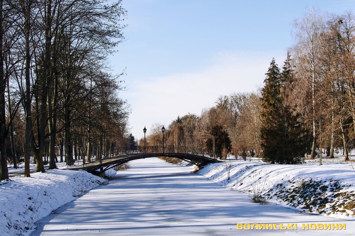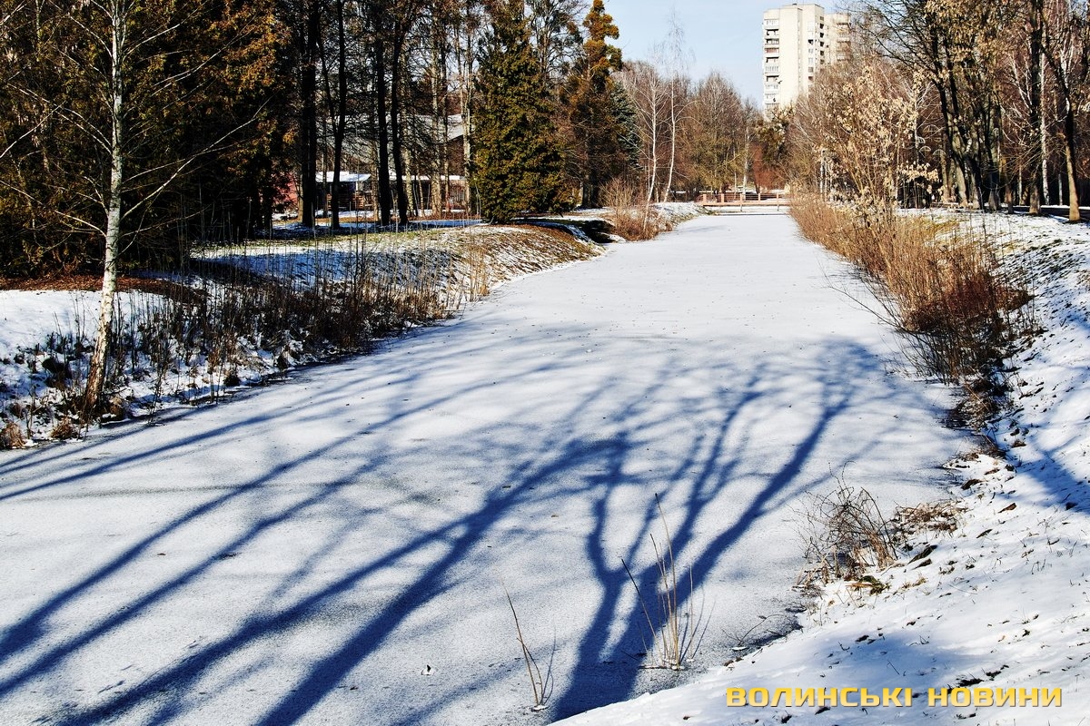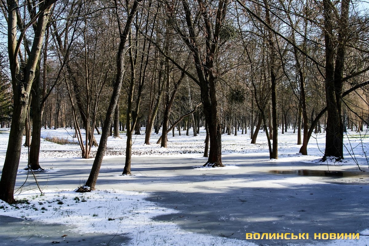 У Центральному парку культури і відпочинку імені Лесі Українки сніг вкрив алеї і наче загорнув все у затишну пухку перину. Тиша і спокій навкруги. Їх поєднує гармонія кольорів. Вода у каналах скута кригою. Парк нині – ідеальне місце для роздумів і милування природою.Темні силуети дерев на білому тлі, контрастні тіні, поодинокі постаті людей. Лише інколи промайне руда блискавка – білка шукає під снігом осінні запаси.Льодові мережива обрамлюють береги Стиру. Нанизані гілками верб кришталики виблискують сонцем. Якщо вслухатися, можна почути постійний шурхіт і потріскування – їх ніжно торкається течія.Але під сонячним промінням сніг відступає. Природа відчуває: ще зовсім трохи – і прийде весна. А з нею віра у те, що все буде гаразд!
