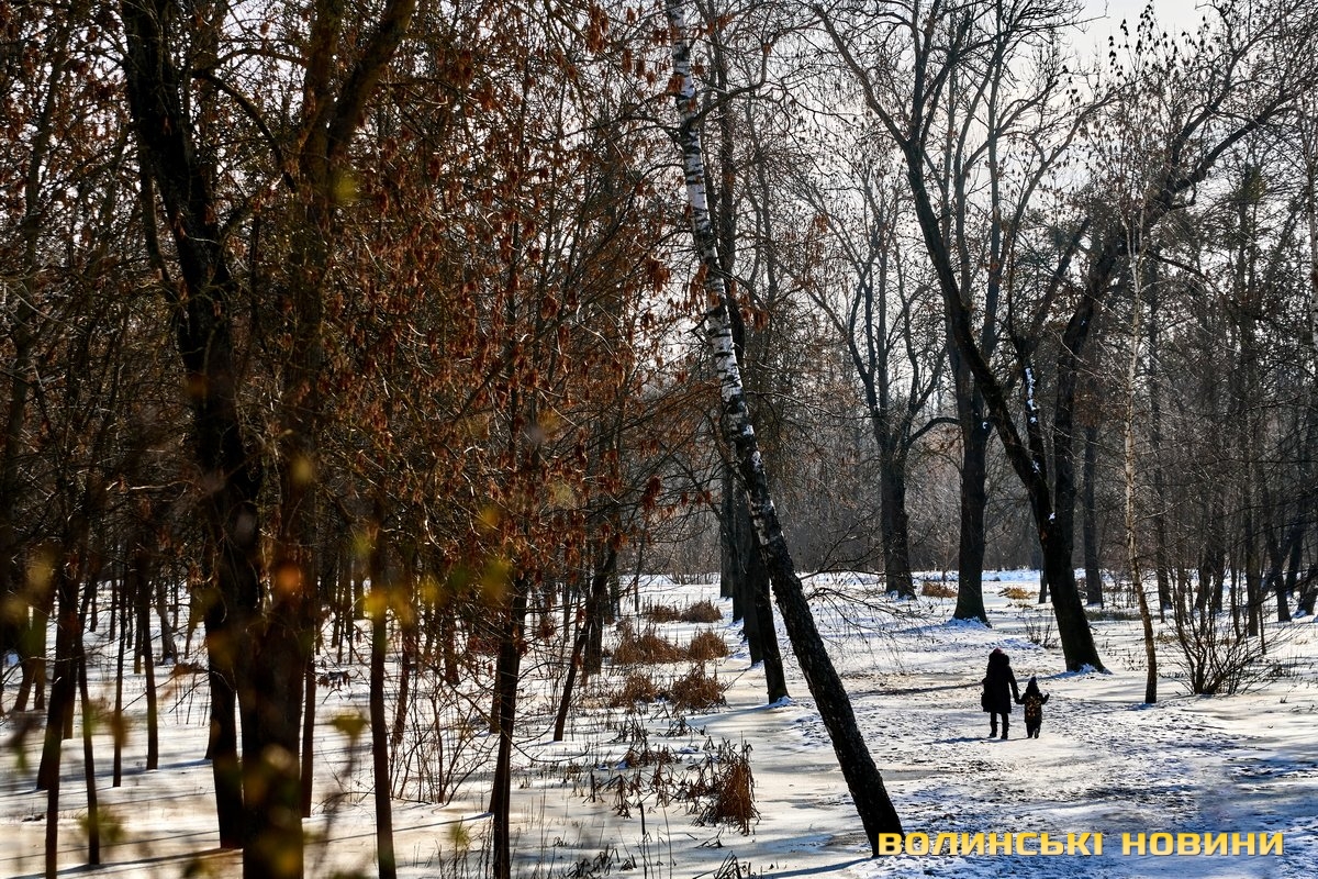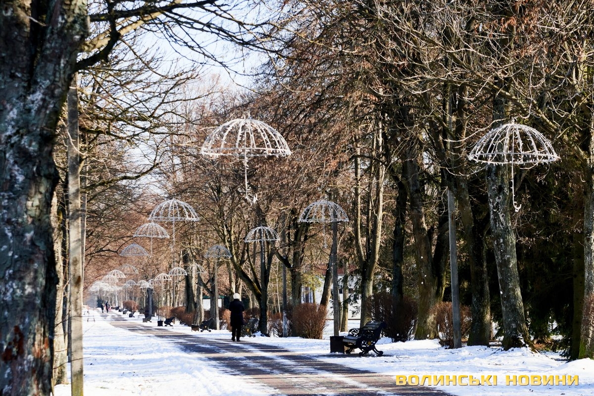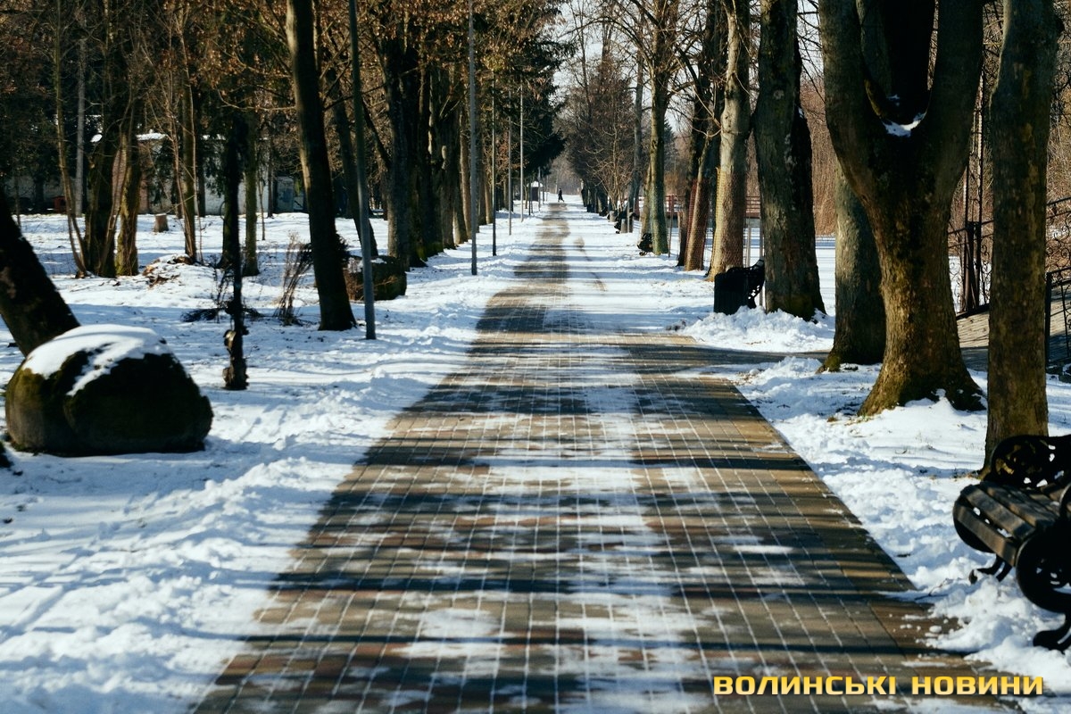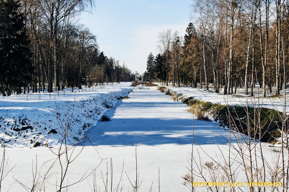 У Центральному парку культури і відпочинку імені Лесі Українки сніг вкрив алеї і наче загорнув все у затишну пухку перину. Тиша і спокій навкруги. Їх поєднує гармонія кольорів. Вода у каналах скута кригою. Парк нині – ідеальне місце для роздумів і милування природою.Темні силуети дерев на білому тлі, контрастні тіні, поодинокі постаті людей. Лише інколи промайне руда блискавка – білка шукає під снігом осінні запаси.Льодові мережива обрамлюють береги Стиру. Нанизані гілками верб кришталики виблискують сонцем. Якщо вслухатися, можна почути постійний шурхіт і потріскування – їх ніжно торкається течія.Але під сонячним промінням сніг відступає. Природа відчуває: ще зовсім трохи – і прийде весна. А з нею віра у те, що все буде гаразд!