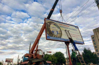 На вулиці Рівненській у Луцьку демонтували білборд. Через різкі пориви вітру частково деформувалися його кріплення і він став аварійним