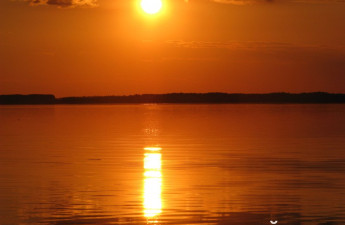 У пору, коли сонце сідає за обрій, хвилі Світязя палають яскравими червоно-жовтими хвилями, а у воді відбивається друге сонце, стежина від якого виграє золотистими барвами.