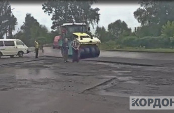 У Любомлі під час зливи поклали асфальт. Відео