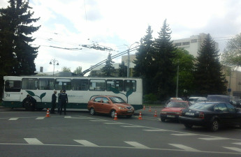 У центрі Луцька тролейбус зачепив авто і перегородив перехрестя. Фото
