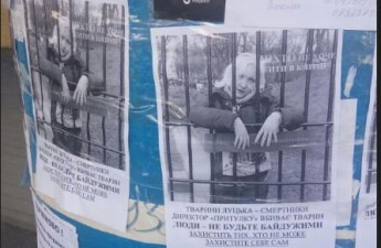 Інформаційні тумби у центрі Луцька обклеїли листівками з закликами захистити тварин від директора КП «Ласка» Дани Новарчук