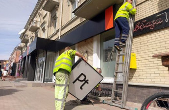 У центрі Луцька демонтували «неправильну» вивіску банку